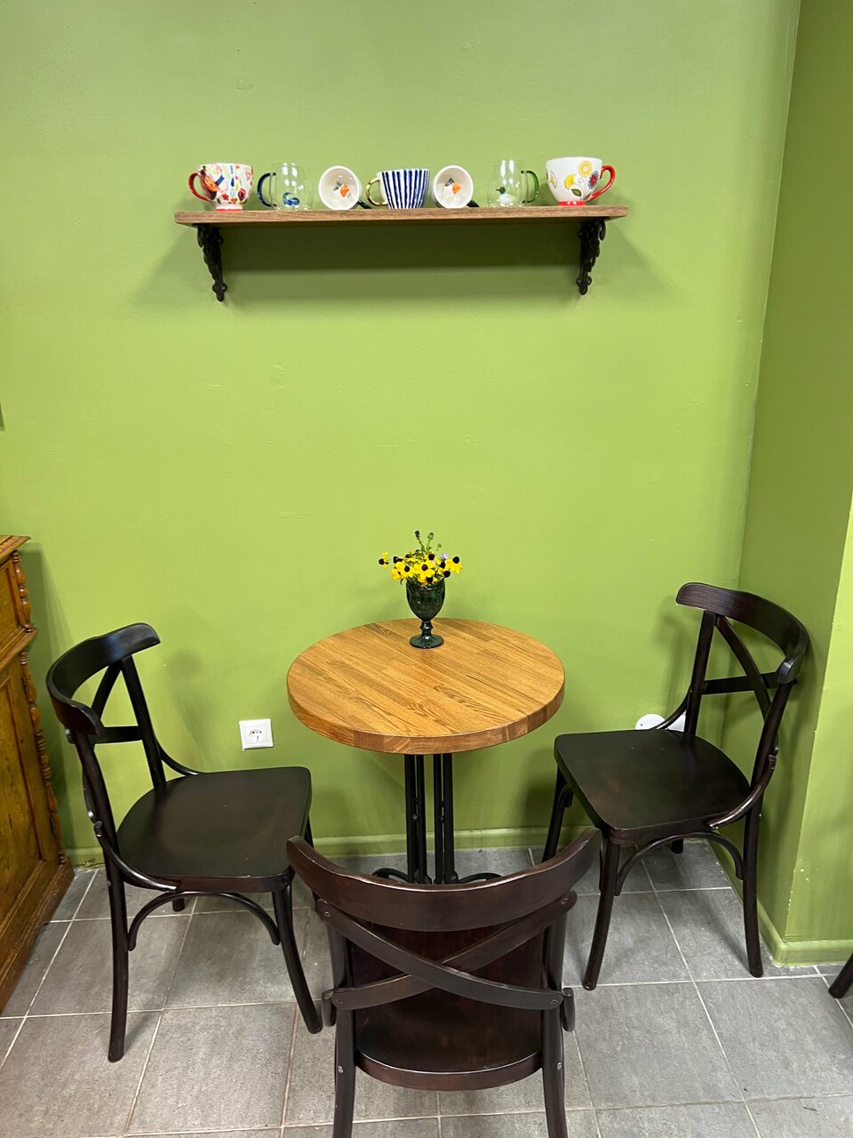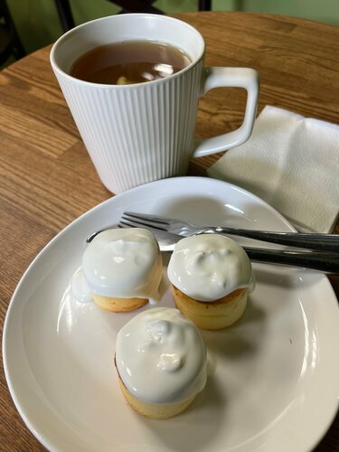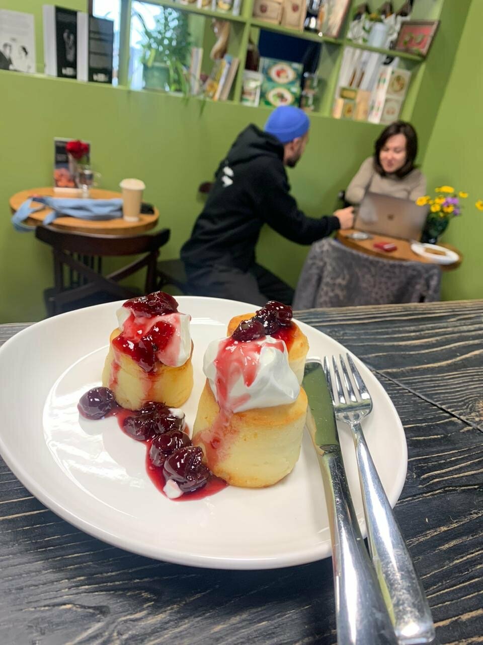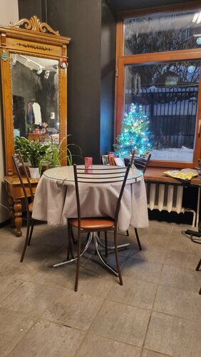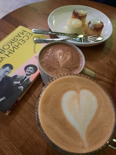 Тëплое атмосферное место, приятный жëлудевый кофе, сырнички без глютена, киш, таранка))