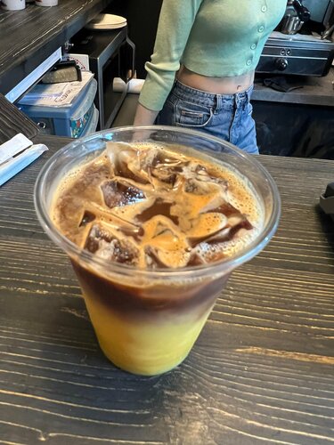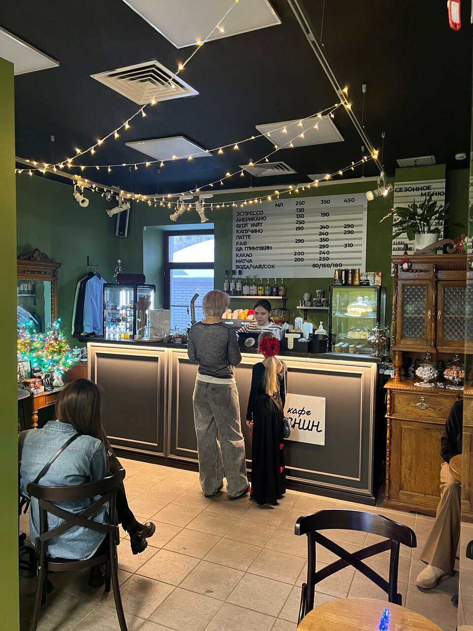 Прекрасное атмосферное кафе! Девушка бариста (работала 25.10) делает оочень вкусный кофе) и выпечка очень вкусная и свежая, особенно круассаны обалденные💛 спасибо :)